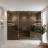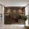 Tähän kenttään voit vaikuttaa muuttamalla Vasemman kiinteän lasin leveyttä ja Saunan oven leveyttä.
