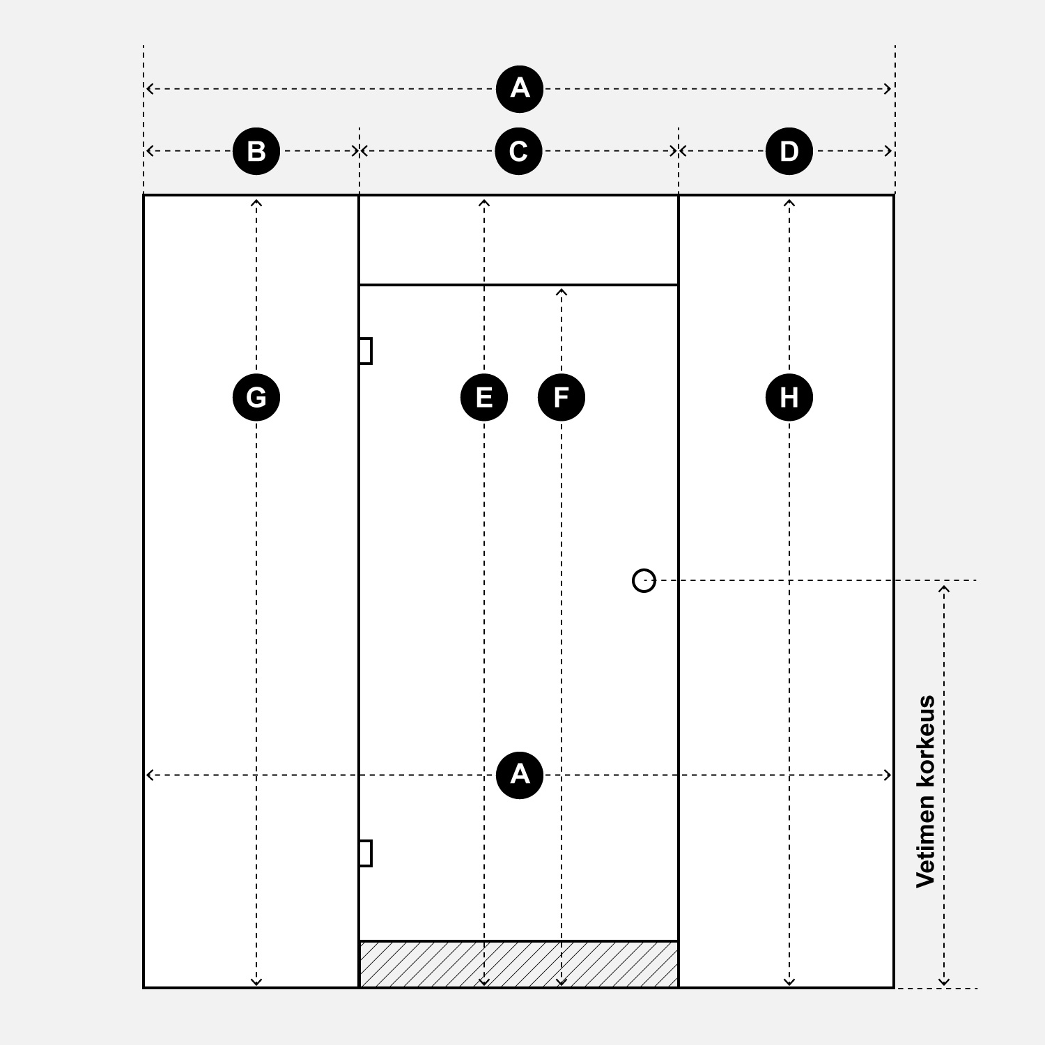 Huom! Voit käyttää apunasi viimeistä kuvaa, missä kirjain kentän kirjain vastaa mitattavaa aluetta. Jos aukko on vino, ilmoita aina pienin mitta, jotta lasi mahtuu varmasti.